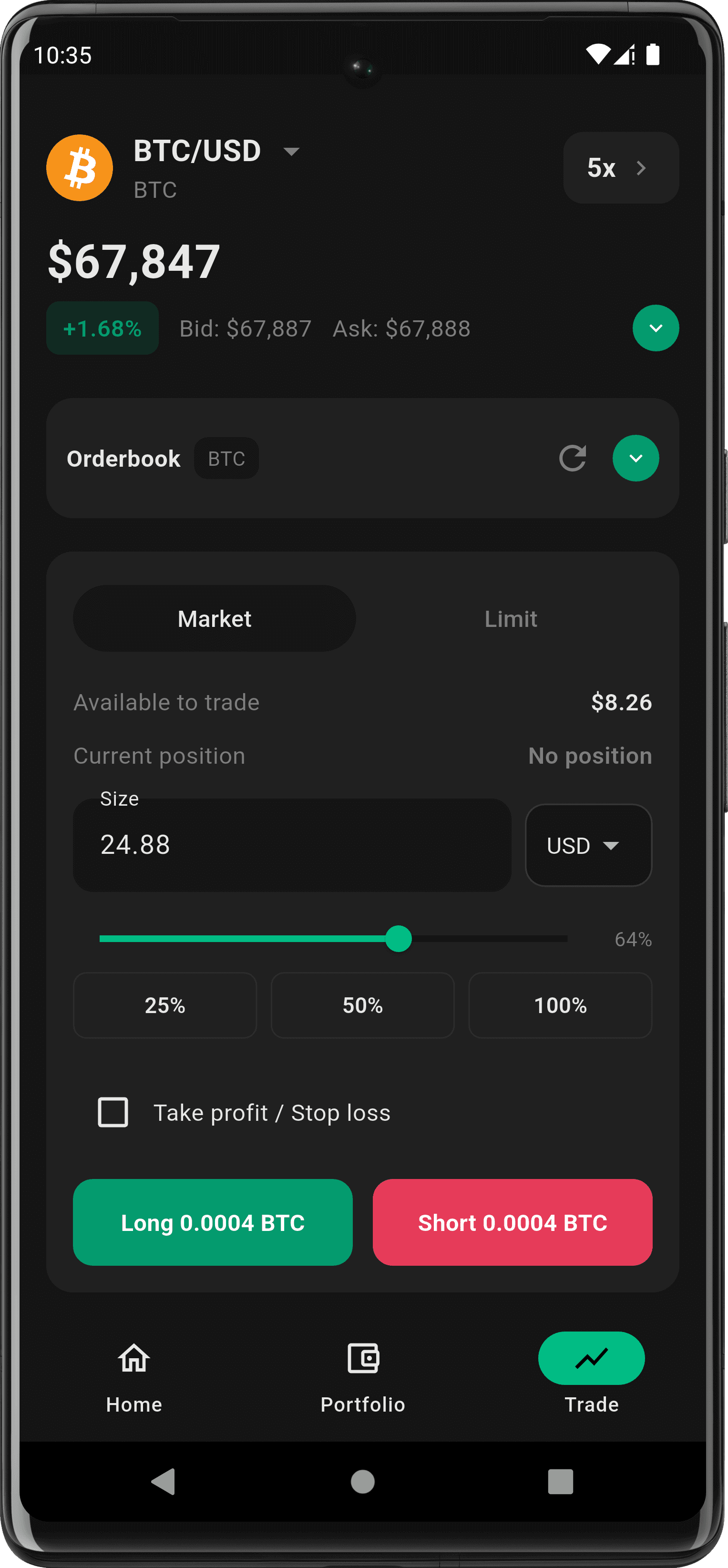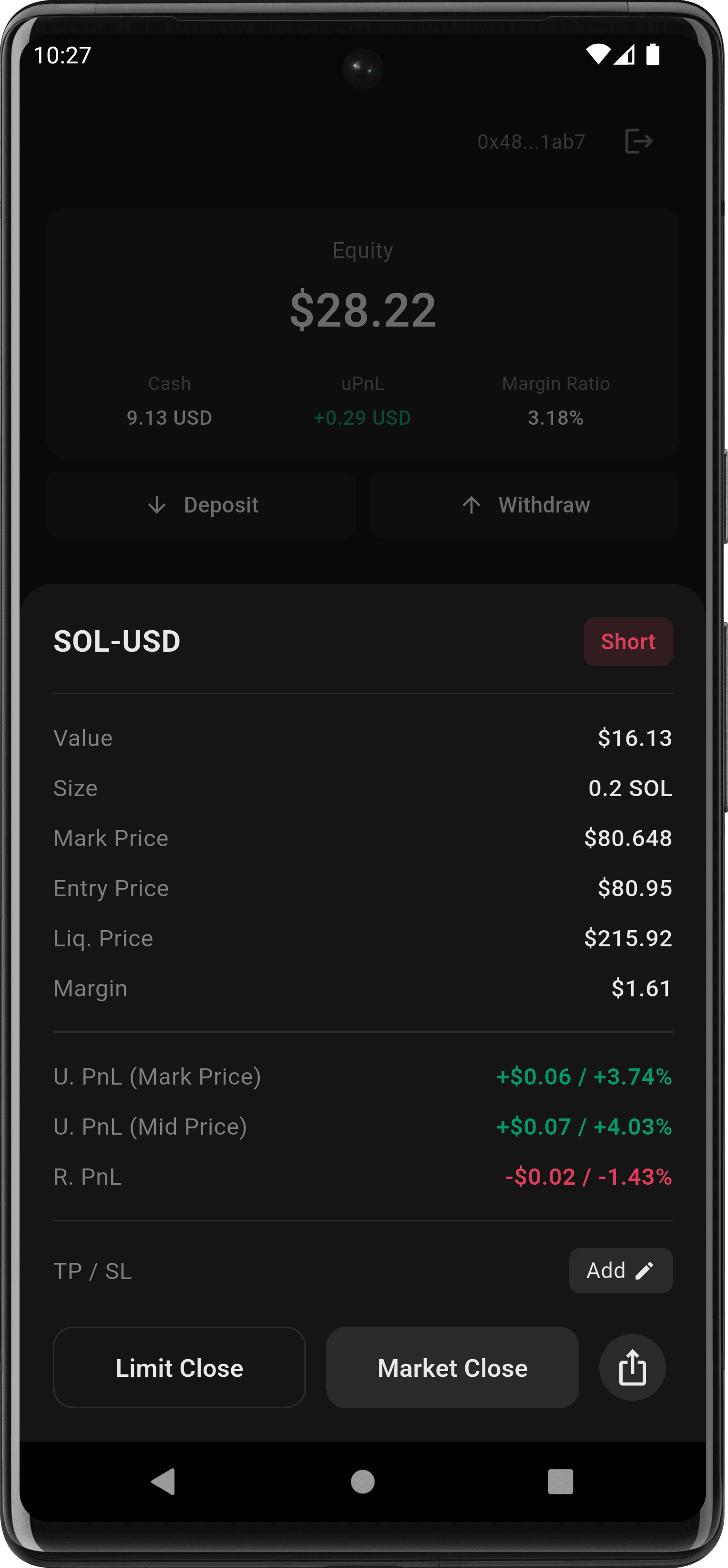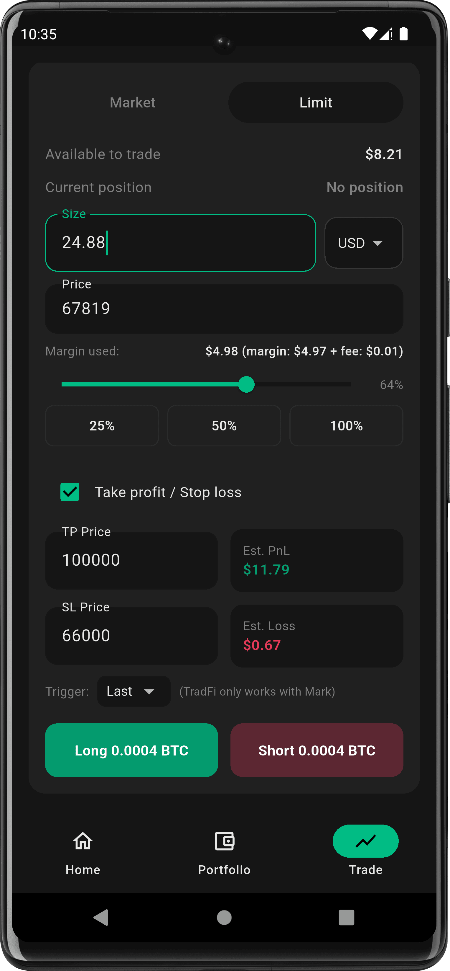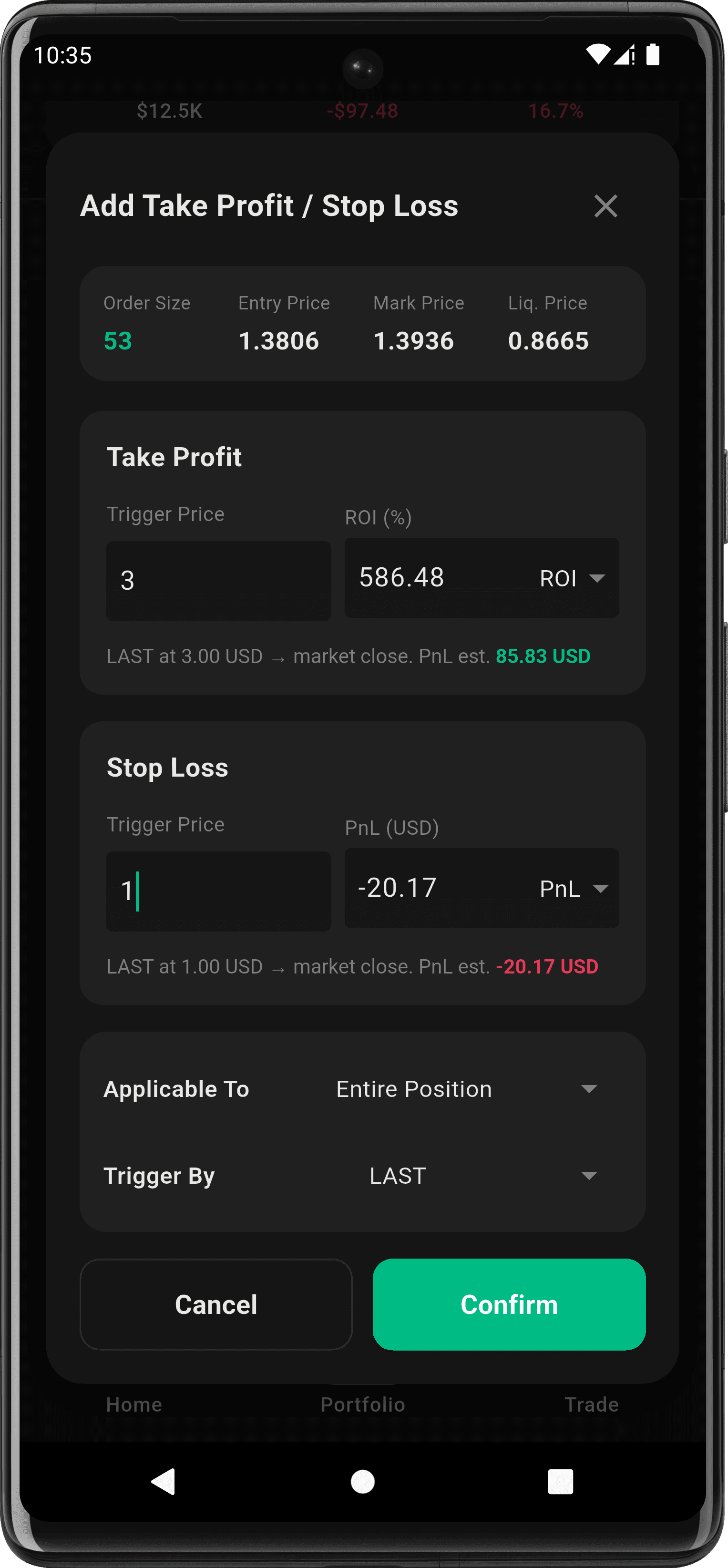 Guard positions with TP/SL and adjust size in a few taps.